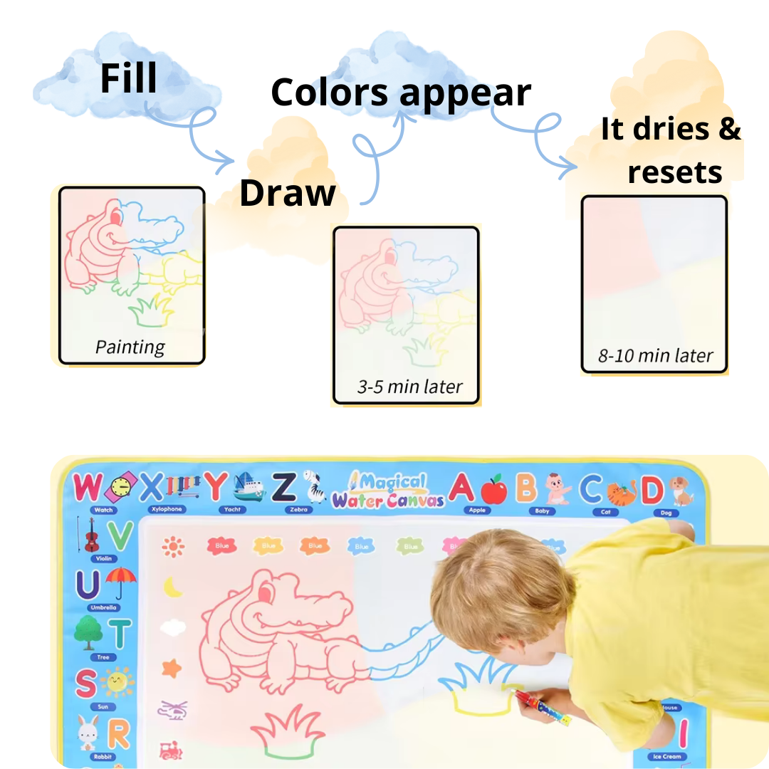 Each drawing fades within a few minutes as the water evaporates. Once dry, the mat looks brand new and can be used again and again.