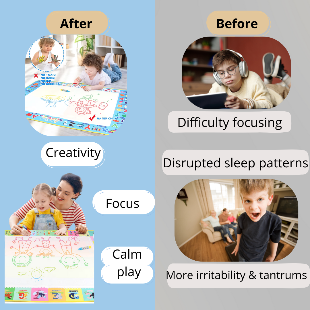 Yes! The AquaLearn Mat™ is designed to capture attention through movement, colors, and hands-on play. Most parents say their kids play for 20–40 minutes at a time — completely screen-free.